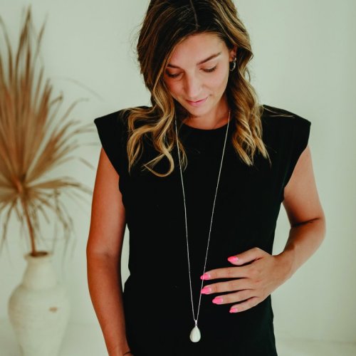 nosí se na delším řetízku/šňůrce tak, aby se přívěsek pohyboval na bříšku těhotné ženy