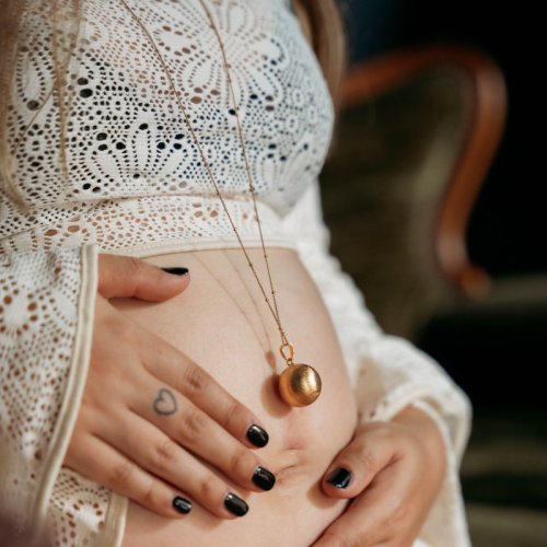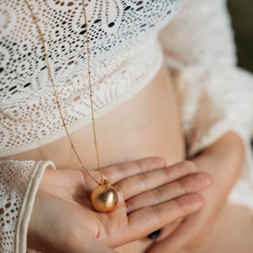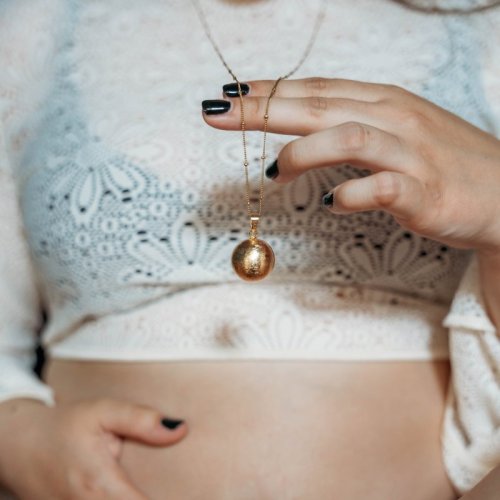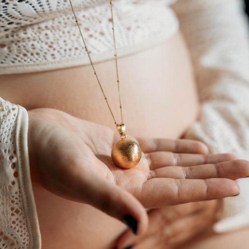 nosí se na delším řetízku/šňůrce tak, aby se přívěsek pohyboval na bříšku těhotné ženy