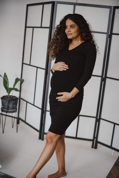 Těhotenské a kojící tričko Milk Shirt milk & love s výstřihem do V. Tričko, které usnadní kojení je vyrobeno z kvalitní bavlny s přídavkem elastanu, díky kterému se nevytahuje a po vyprání se vrací do původního tvaru. Proto vypadá skvěle i po těhotenství a lze ho používat i při kojení. Jednoduché otevírání "smyčkou" umožňuje velmi rychle nakrmit hladové miminko. Správný střih, který zakryje drobné nedostatky postavy, která se ještě nevzpamatovala z těhotenství a dostatečně dlouhý, aby zakryl záda. Elastická látka pojme i těhotenské bříško. Při výběru velikosti se řiďte velikostí, kterou aktuálně nosíte. Oblečení je vyrobeno z elastické látky, proto se přizpůsobí velikosti těhotenského bříška a měnícím se tvarům těla. Oblečení se měří naplocho, takže rozměry uvedené tabulce-(poslední fotografie) nejlépe porovnáte s rozměry oblečení, které vám aktuálně sedí. Nejkvalitnější prodyšné látky, které prošly přísnými testy Oeko-Tex Standard 100. Díky nim je oblečení měkké a příjemné na dotek pro maminku i dítě. Složení: 92% bavlna, 8% elastan. Délka rukávů 7/8.