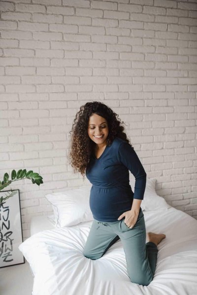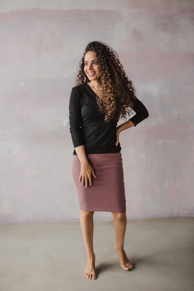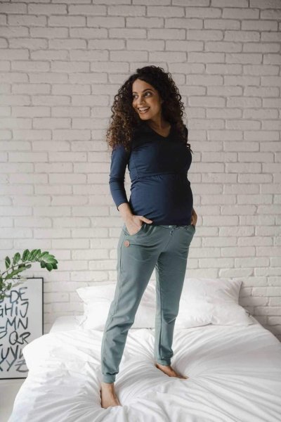 Těhotenské a kojící tričko Milk Shirt milk & love s výstřihem do V. Tričko, které usnadní kojení je vyrobeno z kvalitní bavlny s přídavkem elastanu, díky kterému se nevytahuje a po vyprání se vrací do původního tvaru. Proto vypadá skvěle i po těhotenství a lze ho používat i při kojení. Jednoduché otevírání "smyčkou" umožňuje velmi rychle nakrmit hladové miminko. Správný střih, který zakryje drobné nedostatky postavy, která se ještě nevzpamatovala z těhotenství a dostatečně dlouhý, aby zakryl záda. Elastická látka pojme i těhotenské bříško. Při výběru velikosti se řiďte velikostí, kterou aktuálně nosíte. Oblečení je vyrobeno z elastické látky, proto se přizpůsobí velikosti těhotenského bříška a měnícím se tvarům těla. Oblečení se měří naplocho, takže rozměry uvedené tabulce-(poslední fotografie) nejlépe porovnáte s rozměry oblečení, které vám aktuálně sedí. Nejkvalitnější prodyšné látky, které prošly přísnými testy Oeko-Tex Standard 100. Díky nim je oblečení měkké a příjemné na dotek pro maminku i dítě. Složení: 92% bavlna, 8% elastan. Délka rukávů 7/8.