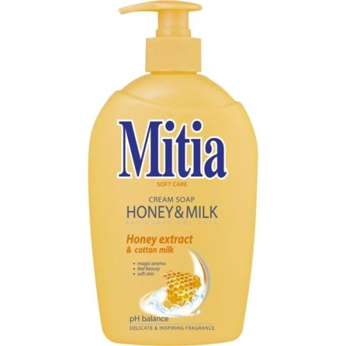 Tekuté mýdlo Mitia s mléčným a medovým extraktem, který pokožku vyživuje a zvláčňuje