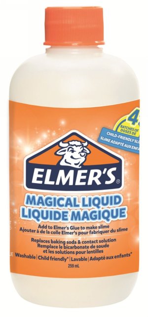 DŮLEŽITÉ INFORMACE:, * K výrobě slizu budete dále potřebovat Glue Liquid Clear nebo Glitter Glue, mísu na promíchání všech složek a stěrku, pomocí které vše důkladně smícháte., * Velmi důležité je PŘIMÍCHÁVAT KOUZELNOU TEKUTINU POSTUPNĚ! , * Hotový sliz uchovávejte v ZAVŘENÉ NÁDOBĚ, aby neztvrdl., * Po hraní si důkladně omyjte ruce., * Nutný dohled dospělé osoby., Vypratelná, netoxická, bezpečná pro děti (nevhodné pro děti do 3 let). NEOBSAHUJE BORAX., BEZPEČNOSTNÍ LISTY KE STAŽENÍ., Došlo vám i Elmer´s tekuté lepidlo k výrobě slizu? Můžete si dokoupit zvlášť >> nebo vyzkoušejte některou ze sad výroby slizu značky Elmer´s., Máme pro vás i návod, jak sliz vyrobit >> .