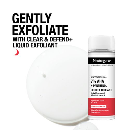 Tekutý peeling obsahuje Alfa Hydroxykyseliny (AHA): kyselinu Glykolovou & Citronovou, které stimulují obnovu kožních buněk a redukují nedokonalosti. SloženípH 3.0 – 4.5 Složení s optimálním pH bylo vytvořeno tak, aby byl peeling maximálně účinný a zároveň šetrný k pokožce.• 7% směs AHA [5% kyselina Glykolová + 2% kyselina Citronová] pomáhá zvýšit obnovu kožních buněk a tím redukovat pupínky a pigmentové skvrny & zjemnit texturu pleti.• 0.5% Panthenol pomáhá zklidnit pleť & udržovat kožní bariéru. Pomáhá odstranit odumřelé kožní buňky a přebytečný kožní maz, který může vést ke vzniku pupínků. Zlepšuje texturu pleti za 1 týden*.Studie se 110 účastníky, používání 1x denně. Bez parfemace & vhodný pro všechny typy pleti. Neobsahuje alkohol. Recyklovatelná lahvička vyrobená z 50 % z recyklovaného plastu.*Tam, kde jsou dostupná recyklační zařízení.