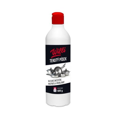 Tekutý písek Willi - 600 g Abrazivní čisticí krém na silné znečištění, mastnotu, usazenou špínu a připáleniny Na moderní i tradiční povrchy Hmotnost 600 g
