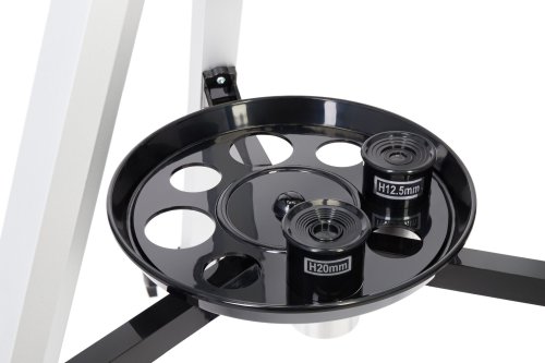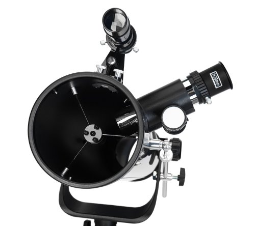 Dalekohled je ideální pro pozorování objektů hlubokého vesmíru, Měsíce a některých planet. Díky antireflexním skleněným čočkám poskytuje jasný a kontrastní obraz. Alt-azimutální montáž s aretačním knoflíkem umožňuje plynulé a přesné nastavení. Kromě toho najdete na stativu přihrádku pro umístění příslušenství.