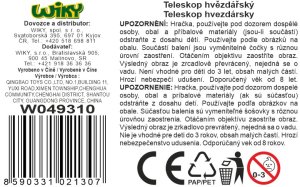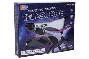 Dalekohled hvězdářský. zvětšení 20x, 30x a 40x. Obsahuje teleskop, stativ, vyměnitelné čočky s různým přiblížením. Otáčením objektivu se zaostřuje. Obraz při pohledu přes teleskop je zrcadlově obrácený.
