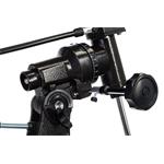 Rovníková (paralaktická) montáž EQ3 umožňuje mnohem intuitivnější pozorování nebeských objektů, neboť po správném seřízení a případném doplnění elektrickým pohonem do RA osy automaticky sleduje nastavený objekt. S lepší orientací vám také pomůže optický hledáček, který se pyšní až 6násobným zvětšením. Paralaktická montáž je ovládaná ručně, kdy se k vyrovnávání používá protizávaží a k zaostření pak poslouží 2 ovládací knoflíky s pomalým pohybem. V polární ose je jemný pohyb téměř neomezený, na deklinační ose je jemný pohyb v cca 40° rozsahu.