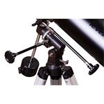 K dalekohledu lze připevnit zrcadlový fotoaparát, takže se hodí pro potřeby astrofotografie s delšími expozicemi. Tento teleskop se totiž dodává včetně ekvatoriální (paralyktické) montáže EQ1 s polární osou, která umožní plynule opisovat obloukovitý pohyb nebeských těles. Tato montáž se tak hodí pro dlouhodobé sledování jednoho objektu s velkým zvětšením i ve větší skupině astronomů. Se správným nasměrováním optického tubusu vám pak pomůže optický hledáček Red Dot, který se pyšní až 6násobným zvětšením. Montáž je připevněna k hliníkovému stativu, nohy stativu mají nastavitelnou výšku a k dispozici je také odkládací přihrádka na příslušenství.