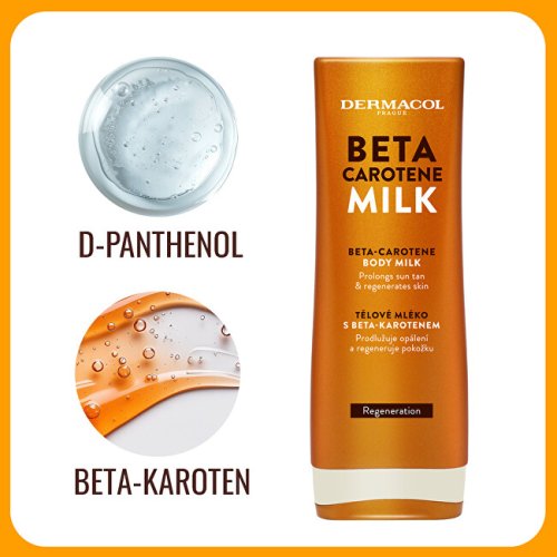 Tělové mléko chrání proti předčasnému stárnutí a je vhodné pro všechny typy pokožky. Obsahuje beta karoten, vitamin E, panthenol a včelí vosk.