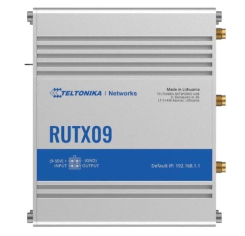 RUTX09 je LTE-A Cat 6 celulární IoT router s dual-SIM, agregací operátorů a čtyřmi gigabitovými ethernetovými rozhraními. Je navržen jako primární nebo záložní zdroj internetu a může nabídnout mobilní rychlost až 300 Mb/s s vysokou datovou propustností.