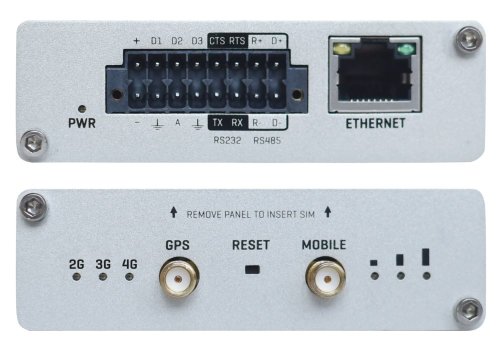Rozhraní: 1 x RJ-45 LAN, 1 x 16pin terminálový blok (napájení, I/O vstupy/výstupy, RS232, RS485), 2 x SIM slot (interní)