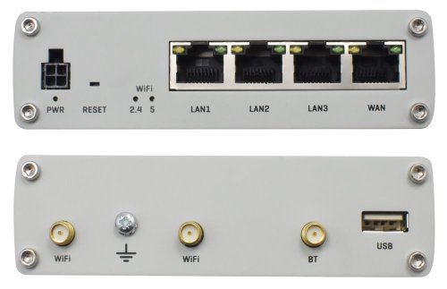 Porty: 4 x RJ-45, 1 x USB 2.0, 2 x RP-SMA (Wi-Fi), 1 x RP-SMA (Bluetooth), 1 x digitální vstup, 1 x digitální výstup (na napájecím konektoru)