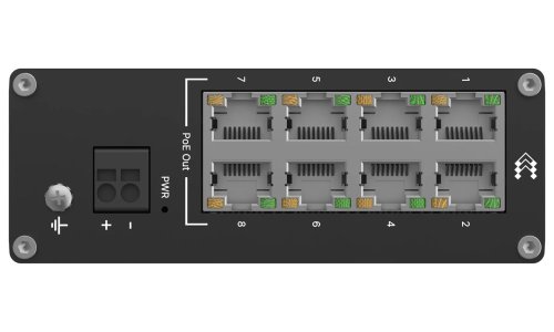 Průmyslový switch bez managementu nabízející osm RJ-45 portů (10/100 Mbps) s podporou PoE 802.3af/at napájení. Celkový PoE budget je 240 W (max. 30 W na port). Snadné použití bez nutnosti konfigurace a instalace.