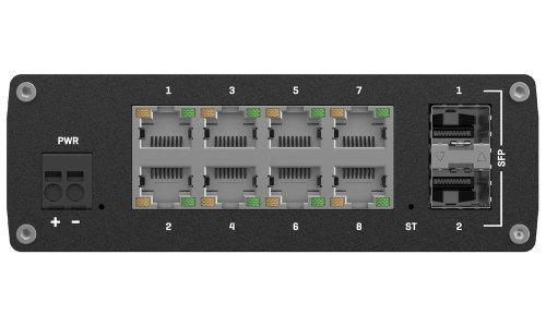 Průmyslový gigabitový L2+ switch s managementem nabízející osm RJ-45 portů a dva SFP porty. K dispozici jsou vybrané L3 funkce, jako statické směrování IPv4 a IPv6 nebo DHCPv6 klient. Podporuje také širokou škálu průmyslových protokolů, včetně EtherNet/IP, Profinet a MRP. Switch má vestavěný držák na DIN lištu.