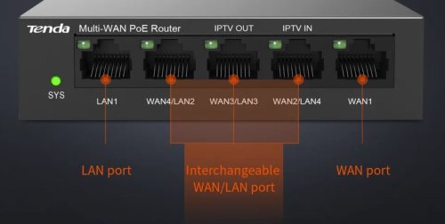 Díky PoE napájení je možné pomocí G0-5G-PoE napájet max. 4 zařízení PoE+ s normou 802.3af/at a celkem 55W. Tenda G0-5G-PoE je router vhodný jak do menších a středních firem, tak i do domácností. Nabízí inteligentní správu šířky pásma a kromě toho je router také vybaven multiprotokolovou VPN, multi-WAN overlay a mnoha dalšími podnikovými funkcemi.