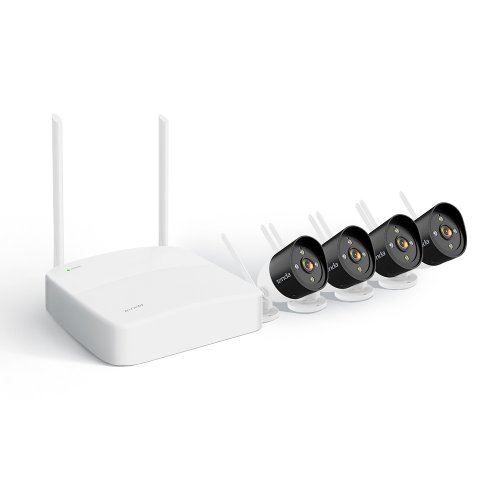 Bezdrátový kamerový Wi-Fi 2K (3MP) systém Tenda K4W-3TC (4-kanálový 2K rekordér NVR + 4 ks 2K (3MP) barevných venkovních kamer s LED svícením a podporou zvuku) a včetně veškerého příslušenství. Komprese H.265 a H.264, Cloud platforma. Voděodolné kamery IP66 s LED svícením, nočním viděním s dosahem 30 m, vestavěný mikrofon, vestavěný reproduktor a siréna, rozlišení 2K (2304 × 1296). Mobilní (Android/iOS) aplikace pro vzdálené online sledování + připojení k TV/monitoru. 5x napájecí adaptér, USB myš, montážní sady.