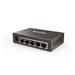 Switch 5x 10/100/1000 Mb/s, Auto MDI/MDIX, Fanless - pasivní chlazení bez ventilátoru, non-blocking architektura, přepínací kapacita 10 Gb/s. Kovový obal. Externí zdroj.