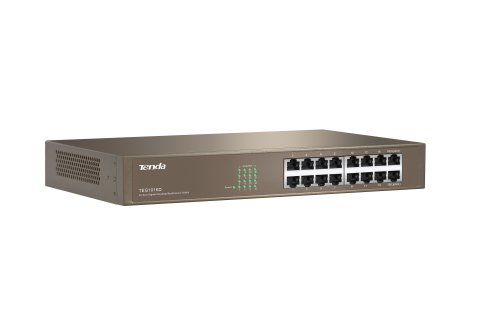 Tenda TEG1016D přepíná data pomocí 24 portů RJ45 s přenosovou rychlostí 10/100/1000 Mb/s s automatickou detekcí rychlosti. Switch disponuje ochranou proti přepětí 6000 V. Podpora přepojování uzlů v módu Store-and-Forward. Full-duplex kontrola toku 802.3x, half-duplex kontrola toku v režimu Back-Pressure. Maximální propustnost 32 Gb/s. Balení obsahuje kovové "L" držáky pro montáž do rozvaděče. Switch je napájen interním zdrojem.