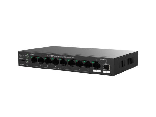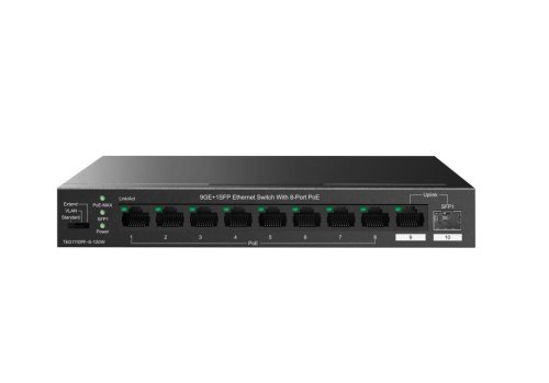 Tenda TEG1110PF-8-120W je 9ti portový Gigabitový Ethernet PoE switch s napájením PoE af/at a SFP portem. 8 portů 10/100/1000 Mb/s je napájeno pomocí PoE 802.3af/PoE 802.3at (celkem 110 W), pro Uplink 1x RJ45 10/100/1000 Mb/s + 1x SFP port 100/1000 Mb Ochrana proti přepětí 6 kV. Přepínání VLAN, Extend, Standart. Kovový obal. Bez ventilátoru, bez ventilátorů. Součástí balení je český, slovenský a polský manuál.