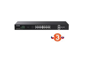 Tenda TEG1120P-16-250W je 18ti portový Gigabitový Ethernet PoE switch s napájením PoE af/at a 2x SFP sloty. 16 portů 10/100/1000 Mb/s je napájeno pomocí PoE 802.3af/PoE 802.3at (celkem 230 W) + 2x RJ45 10/100/1000 Mb/s + 2x SFP 1000 Mb/s pro Uplink. Rackmount, velikost switche 19". Ochrana proti přepětí 6 kV. Přepínání VLAN, Extend, Priority, Standart. Kovový obal.