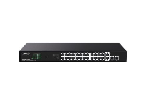Tenda TEG1128P-24-250W je 26ti portový Gigabitový Ethernet PoE switch s napájením PoE af/at a 2x SFP sloty. 24 portů 10/100/1000 Mb/s je napájeno pomocí PoE 802.3af/PoE 802.3at (celkem 230 W) + 2x RJ45 10/100/1000 Mb/s + 2x SFP 100/1000 Mb/s pro Uplink. Rackmount, velikost switche 19". Ochrana proti přepětí 6 kV. Přepínání VLAN, Extend, Priority, Standart. Kovový obal.