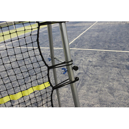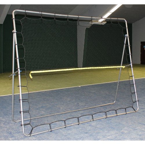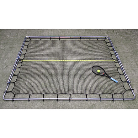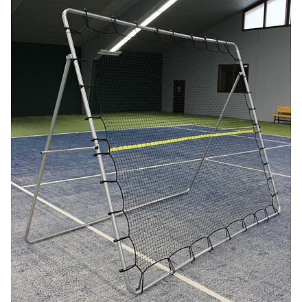 Tenisová odrazová stěna Tennis Court Rebounder je výborný pomocník ke zlepšovaní vašeho tenisového umění. Kovová odrazová stěna o rozměrech 270 x 220 x 90 cm nabízí nastavitelnost polohy do určitého úhlu. Hráč si tak může zkoušet různé druhy úderů, zlepšovat svoji reakci, švih a míček se mu pokaždé vrátí zpět. Výhodou odrazových stěn je, že nepotřebujete parťáka a můžete trénovat za příznivého počasí venku nebo kdykoliv uvnitř v hale. Součástí balení je síť a elastické úchyty, kterými napnete a uchytíte síť ke konstrukci. Konstrukci postavíte během pár minut díky zasouvacím trubkám a šroubům. Uprostřed napnuté sítě je žlutá páska, která označuje střed a simuluje tak výšku pravé tenisové sítě. Odrazovou stěnu využijí dospělí, ale i začínající hráči. Parametry: rozměry stěny: 270 x 220 x 90 cm hmotnost: 20 kg