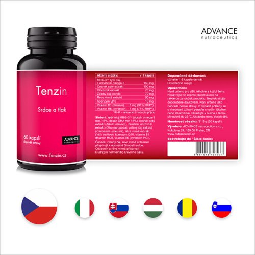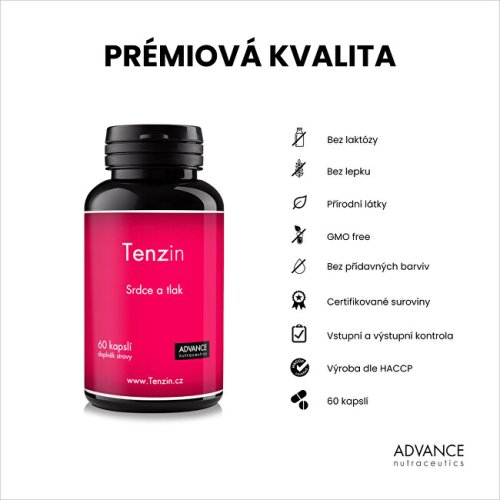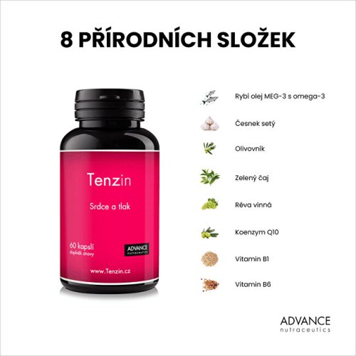 Přípravek Tenzin obsahuje unikátní kombinaci přírodních látek, které přispívají k normální činnosti srdce a normálnímu krevního tlaku.