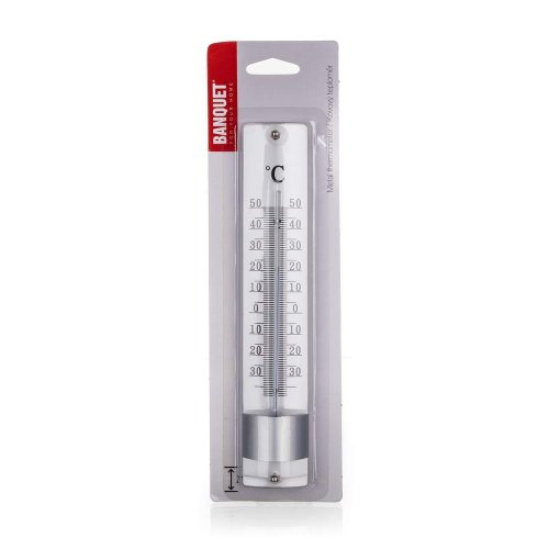 Kovový teploměr je vybavený stupnicí v rozpětí - 40 až + 50 st. C. Teploměr je opatřen systémem pro zavěšení.