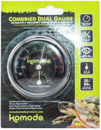 Sledování teploty a vlhkosti v teráriu je nezbytné pro úspěšný chov jakéhokoli terarijního zvířete. Kombinovaný teploměr a vlhkoměr Komodo s analogovým displejem má vše, co k tomu potřebujete. Výhody: