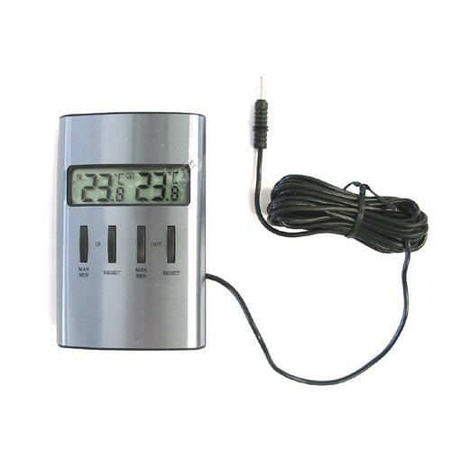 rozměry (Š x H x V): 64 x 22(58) x 98 mm teplotní rozsah: vnitřní: -10/+50 °C; venkovní: -50/+70 °C hmotnost: 63 g součástí 1 x 1,5V AA baterie venkovní teplota přes kabel (300 cm) funkce MIN/MAX stříbrná metalíza