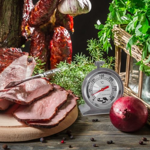 Teploměr vyrobený z kvalitního nerezu a skla s rozsahem 0 až 300° C.