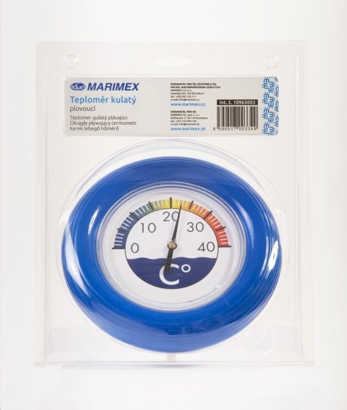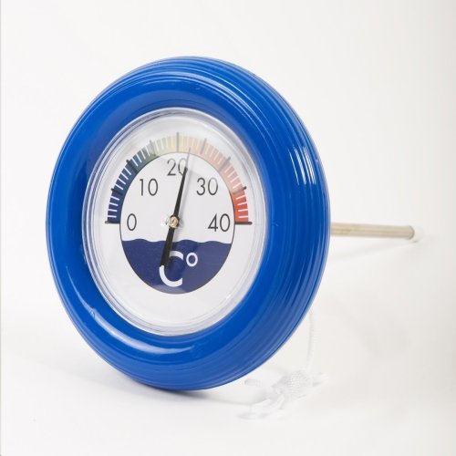 Kulatý plovoucí teploměr pro snadnou kontrolu teploty vody v bazénech a vířivkách. Velká, snadno čistitelná stupnice, provázek pro uchycení teploměru.