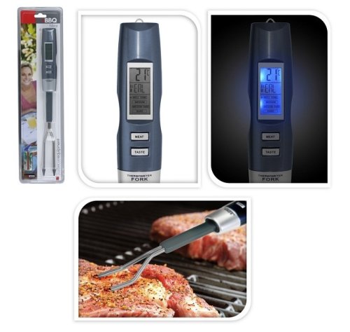 Pokud rádi pracujete v kuchyni a připravujete chutné pokrmy, pak chcete také kuchyňský teploměr. Teplota vašich pokrmů vypovídá hodně o propečenosti jídla, například o teplotě masa. S kuchyňským teploměrem uvidíte, zda je vaše jídlo hotové bez krájení, a navíc můžete být včas u toho, aby se vaše maso nepřepeklo. Tímto způsobem si vychutnáte ten nejchutnější a nejjemnější výsledek.Tento teploměr při pečení vložíte do masa a měříte teplotu jádra. Proto je tento kuchyňský teploměr známý také jako jádrový teploměr nebo teploměr na maso. Potravinový teploměr využijete především na větší kusy masa, jako je celé kuře, krůta, hovězí holínka nebo roláda. Hodí se i na grilování.Digitální s širokým rozsahemTento digitální teploměr má široký rozsah teplot od 0 do 120 stupňů Celsia. Chtěli byste raději měřit ve stupních Fahrenheita? To je také možné, s rozsahem 32 až 248 stupňů Fahrenheita. Výhodou digitálního kuchyňského teploměru je, že přesně zobrazuje teplotu.Předprogramované druhy masaTento digitální teploměr na maso má různá předprogramovaná nastavení, takže snadno zjistíte, zda bylo dosaženo správné teploty v závislosti na druhu masa a požadovaném způsobu přípravy. Můžete jej nastavit na přípravu hovězího (Beef), telecího (Veal), jehněčího (Lamb) a vepřového masa (Pork) a kuřecího (Chick) a krůtího (Turk) masa. Tyto druhy masa vybíráte pomocí tlačítka Meat. Poté pomocí tlačítka „TASTE“ vyberte stupeň vaření ze 4 úrovní:Rare - jeměMedium rare - středně jemněMeduim - středněWell done - plněJakmile nastavíte preference, vložte teploměr do masa. Pro dobré měření zasuňte sondu do poloviny nejtlustší části masa. Udržujte sondu mimo kosti a tukové části. Jakmile teploměr naměří minimální teplotu v požadovaném rozsahu, zazní alarm.Hodnotu odečtete na obrazovce, která je vybavena osvětlením. Na maso si můžete posvítit malým LED světlem. I při slabém osvětlení jasně vidíte, zda je vaše maso hotové. To se hodí zejména při večerním grilování.- digitální teploměr na maso model vidlička- dlouhá varianta vhodná ke grilování- materiál: plast / nerez- celková délka: 34 cm- teplotní rozsah: minus 20 až + 300°C- napájení: 2x AAA baterie, jsou součástí balení- značka: PROGarden