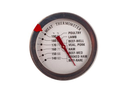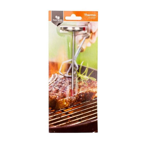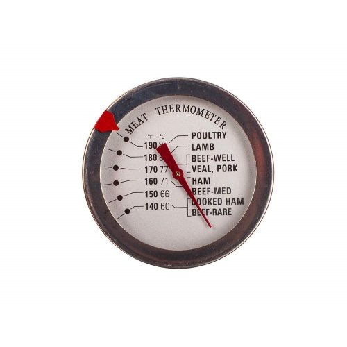 Teploměr na maso, s potiskem symbolů nejčastěji používaných druhů masa, měří vnitřní teplotu pečeně od 60 - 87 st. C.