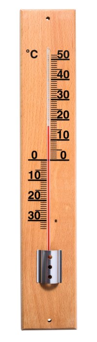 Venkovní dřevěný teploměr na zavěšení i přišroubování. Stupnice -40 až +50°C, rozměry 50 x 9 cm. Mořené bukové dřevo, nelakovaný. Český výrobce. EAN 8594025310043
