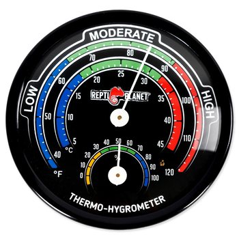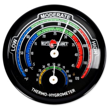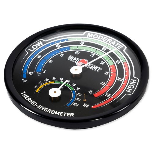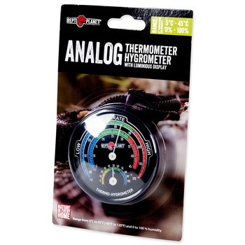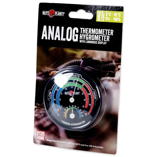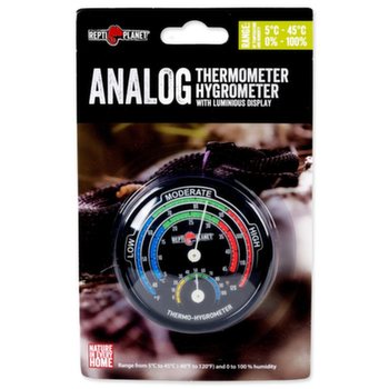 Analogový teploměr a vlhkoměr, který svítí ve tmě.