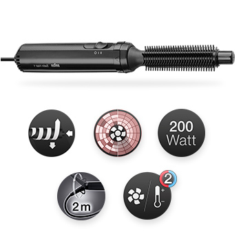 Popis výrobku: Úprava & vysoušení krátkých vlasů: Teplovzdušný ondulační kartáč Satin Hair 1 Krátké vlasy poskytují flexibilitu! S teplovzdušným ondulačním kartáčem Braun Satin Hair 1 objevíte řadu účesů, které váš krátký střih ukrývá. Upravte a vysušte si vlasy najednou a chraňte je pomocí jedinečné technologie od Braun. Vytvořte si autentický účes 20. let s kouzelnými kudrlinkami, vytvarujte si ofinu s moderním, důmyslným efektem, dejte svému účesu objem od kořínků nebo si zatočte konečky. Hlavní přednosti: Uvolňovací funkce Speciální uvolňovací funkce vám umožní vlasy upravit, aniž by se zamotaly a polámaly. Každý pramen vlasů se snadno a hladce uvolní. Pro rozmanité účesy bez problémů! Osobní nastavení Individuální úprava vlasů si žádá možnost individuálního nastavení. 2 stupně nastavení umožňují přizpůsobit teplotu a intenzitu proudění vzduchu dle vašich potřeb. Můžete si být jistá, že teplota a intenzita proudění vzduchu vždy přesně odpovídá typu vašich vlasů, takže ty se pak při úpravě nepřesuší.