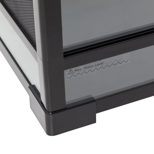 Terária jsou vybavena horním a spodním plastovým rámečkem, který umožňuje stohování terárií a umístění topných desek přímo na vnější stranu spodní skla.