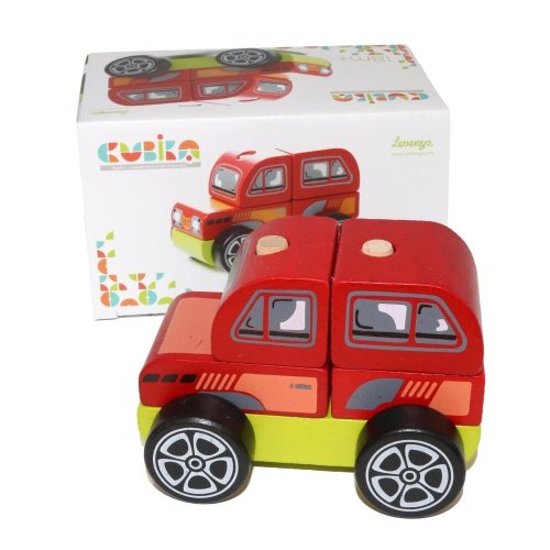 Terénní vůz je dřevěná skládačka s 5 díly, které se na sebe musí poskládat tak, aby se auto mohlo vydat do pořádného terénu. Tato skládačka je jednoduchou stavebnicí pro nejmenší děti.