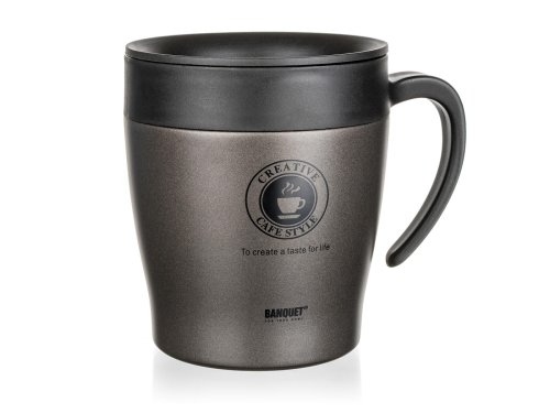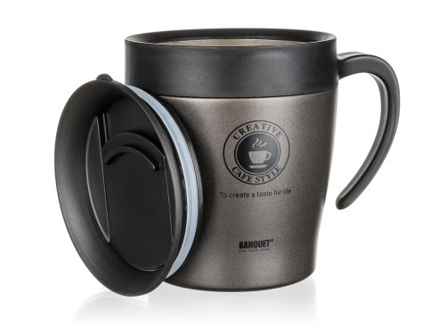 Dvoustěnný cestovní termohrnek TAZZA v metalické antracitové barvě, je vhodný na teplé i studené nápoje