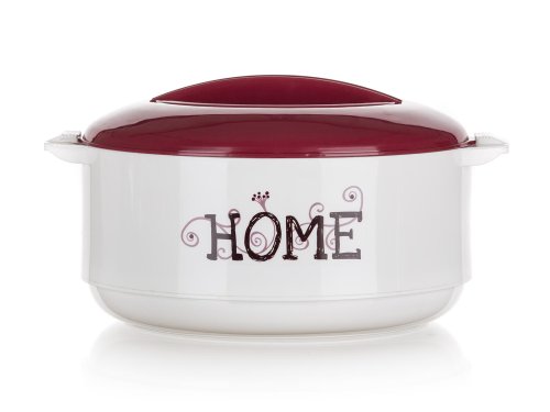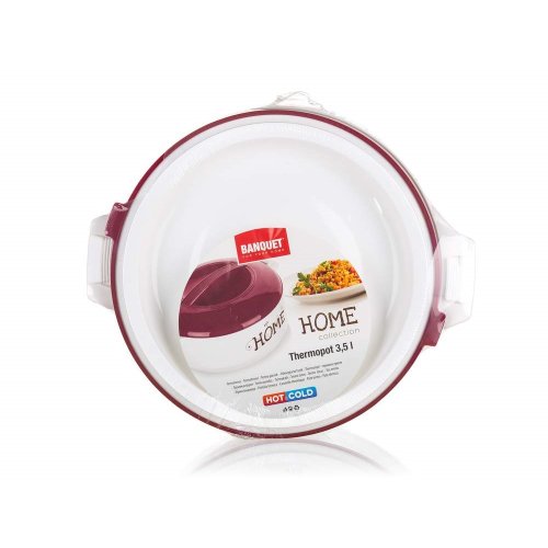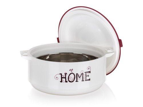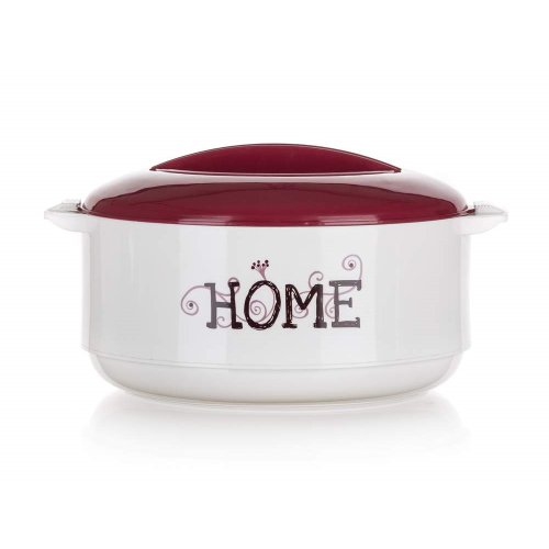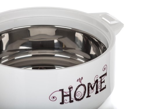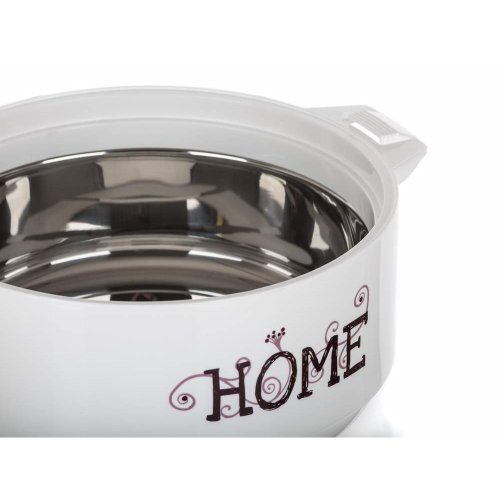 Termohrnec s poklicí HOME je praktický pro uchovávání teplých pokrmů. Ocení ho hlavně kuchaři a kuchařky při uskladnění hotových pokrmů před samotným servírováním. V barevném provedení bílá - bordó s dekorem HOME. Vnitřek hrnce tvoří nerezová vložka, výplň mezi stěnami je z PUR pěny pro zachování vynikající izolace při skladování či přenášení potravin.