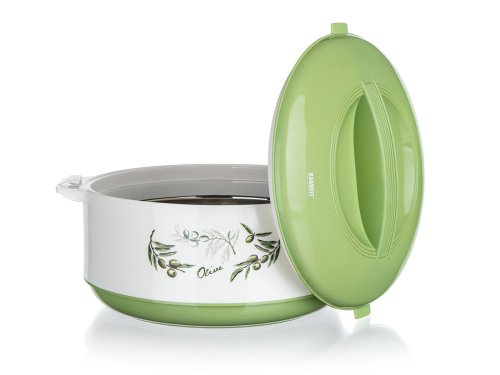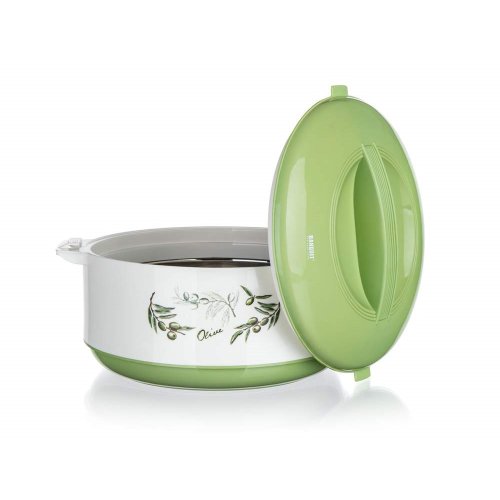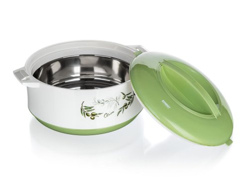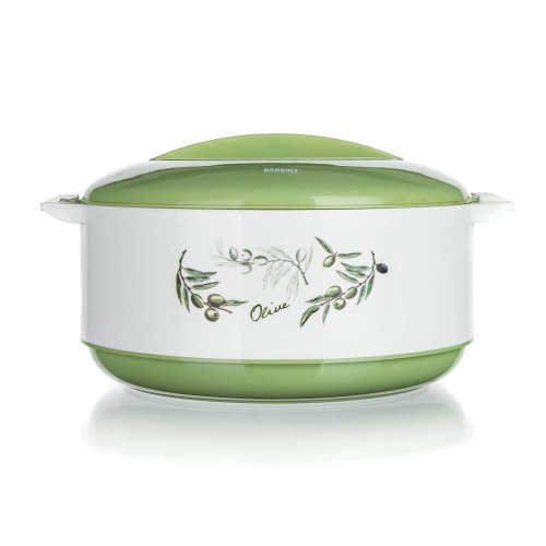 Termomísa OLIVES s poklicí. Praktický termohrnec pro uchovávání teplých pokrmů. Vnitřek hrnce tvoří nerezová vložka, výplň mezi stěnami je z PUR pěny pro zachování vynikající izolace při skladování či přenášení potravin. Termohrnec ocení hlavně kuchaři a kuchařky při uskladnění hotových pokrmů před samotným servírováním.