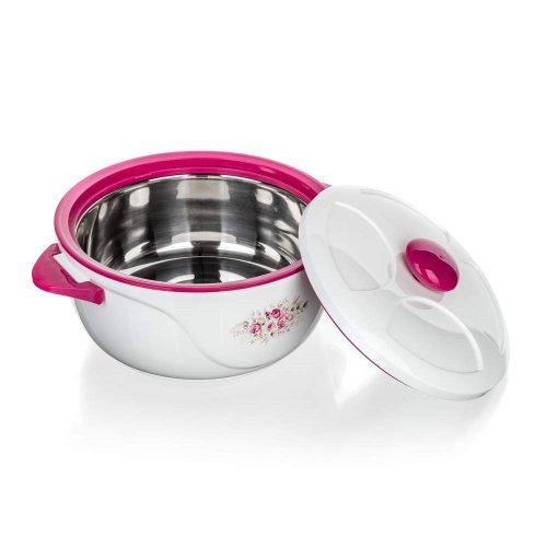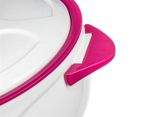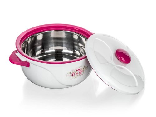 Termomísa ROSE s poklicí pro uchovávání teplých pokrmů. Vnitřek hrnce tvoří nerezová vložka, výplň mezi stěnami je z PUR pěny pro zachování vynikající izolace při skladování či přenášení potravin. Termomísu ocení hlavně kuchaři a kuchařky při uskladnění hotových pokrmů před samotným servírováním. Má sklápěcí ucha.