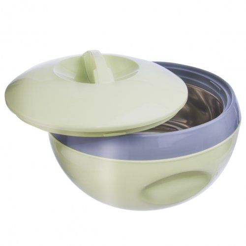 Termomísa v plastovém obalu s nerezovým vnitřkem udrží vložený pokrm po dlouhou dobu teplý nebo naopak chladný, snadné uzavření otočením plastového termo víčka, 3,5 l .