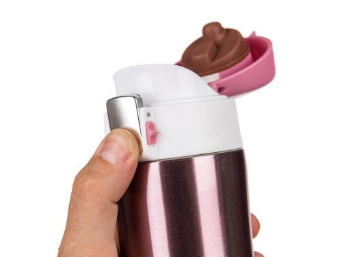 Cestovní termoska BODO má vnější i vnitřní povrch z nerezu a plastové vyklápěcí víčko. Díky dvoustěnnému provedení si udrží nápoj déle svou teplotu. Víčko se otevírá stisknutím pojistky, u které je zámek zabraňující nechtěnému otevření termosky.