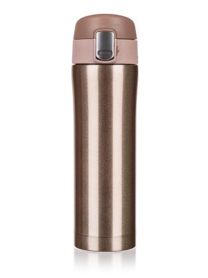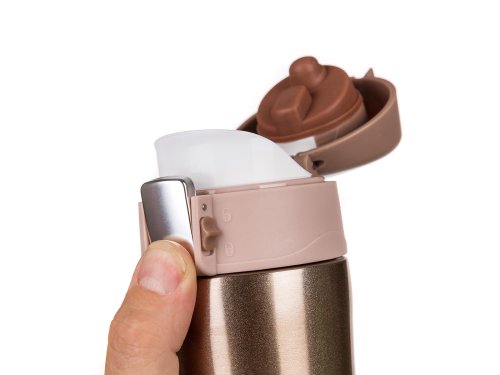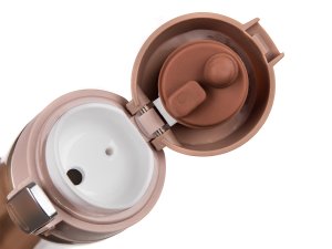 Cestovní termoska BODO má vnější i vnitřní povrch z nerezu a plastové vyklápěcí víčko. Díky dvoustěnnému provedení si udrží nápoj déle svou teplotu. Víčko se otevírá stisknutím pojistky, u které je zámek zabraňující nechtěnému otevření termosky.