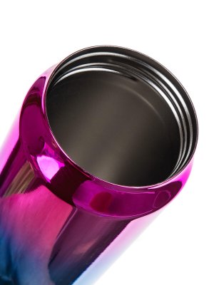 Termoska BE COOL v duhové modré barvě. Tělo dvoustěnné nerezové: uvnitř 18/8, vně 18/0, víčko: nerez 201 / PP / PS pítko / silikonové těsnění, brčko plast PE. Tělo termosky je vakuové, udrží nápoje déle horké či studené. Víčko není nepropustné , doporučujeme uchovávat ve svislé poloze.