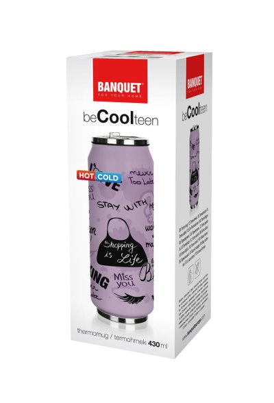 Termoska 0,43 l, plechovka BE COOL TEENAGER GIRLS, fialová.