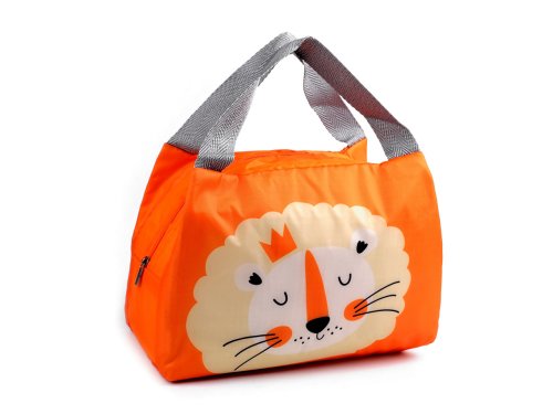 Termotašku zdobí [na přední straně obrázky] zvířátek. Její předností je, že uchová potraviny po určitou dobu při stejné teplotě. V hlavním úložném prostoru je izolační vrstva, která je omyvatelná. Díky širokému dnu perfektně stojí. Zapíná se na zip, nahoře má ucha na přenášení.