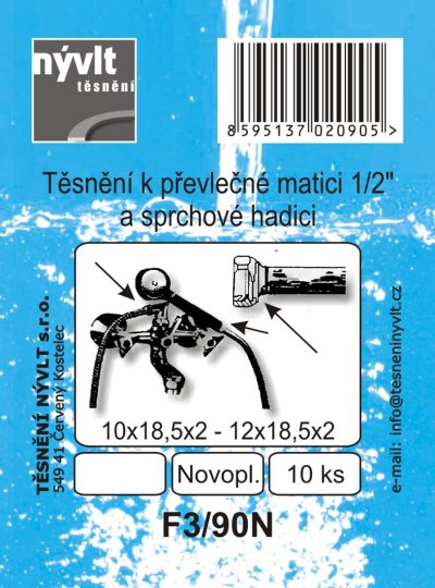 Těsnění převlečné matice 1/2", multiflex, 18 x 12 x 2 mm (10 ks) - F3/90N.